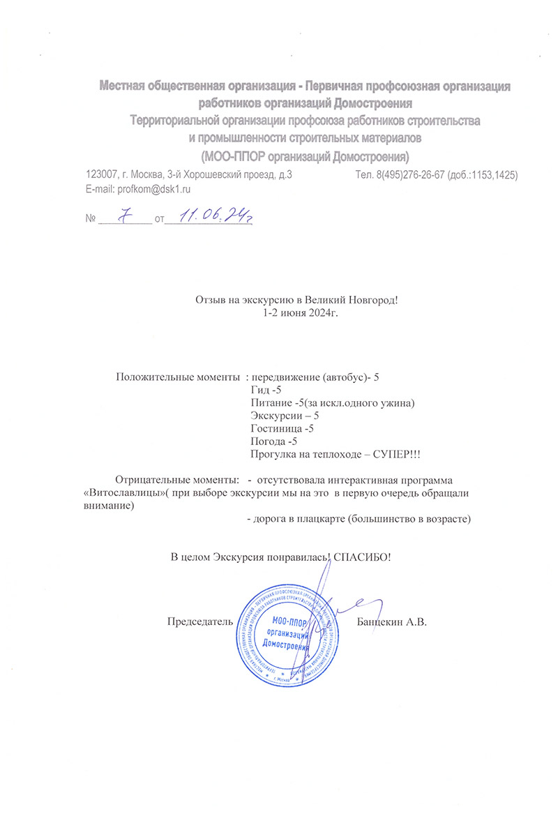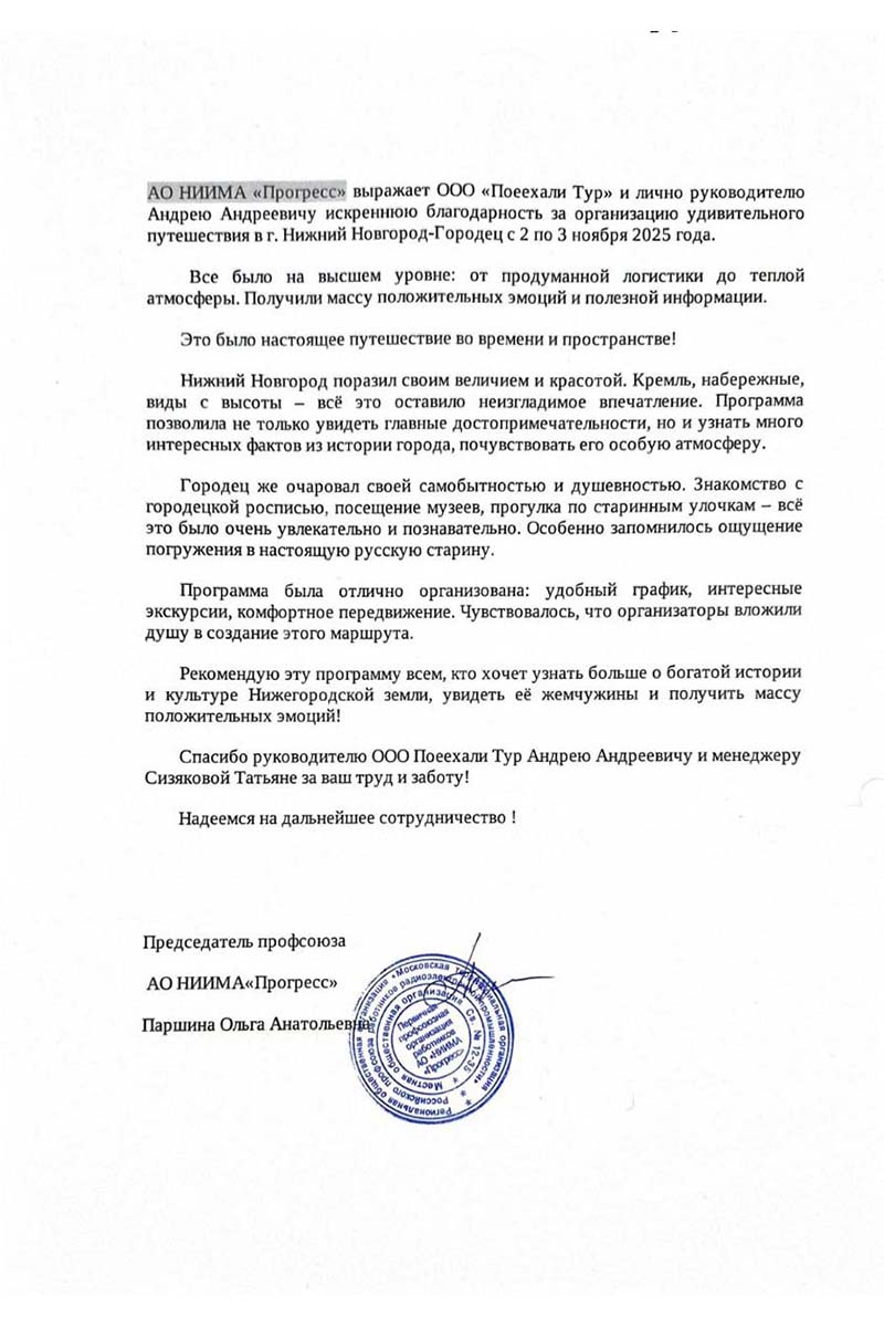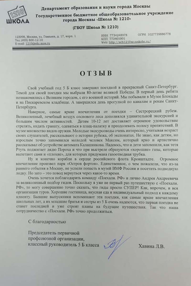 Отзывы о наших турах и экскурсиях